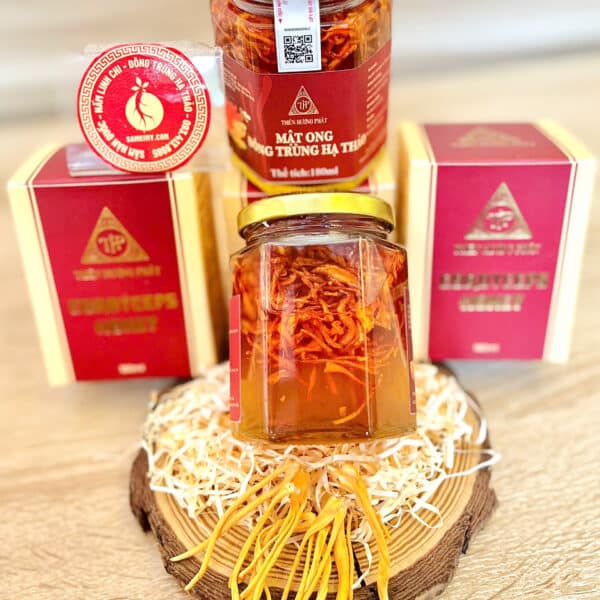 Mật Ong Đông Trùng Hạ Thảo Thiên Hương Phát là sự kết hợp hoàn hảo giữa mật ong nguyên chất và Đông Trùng Hạ Thảo Cordyceps Militaris nuôi trồng chuẩn GMP. Với công nghệ ngâm ủ tự nhiên, sản phẩm vừa giữ trọn dưỡng chất quý hiếm của trùng thảo, vừa bổ sung công năng kháng khuẩn, kháng viêm tự nhiên từ mật ong.