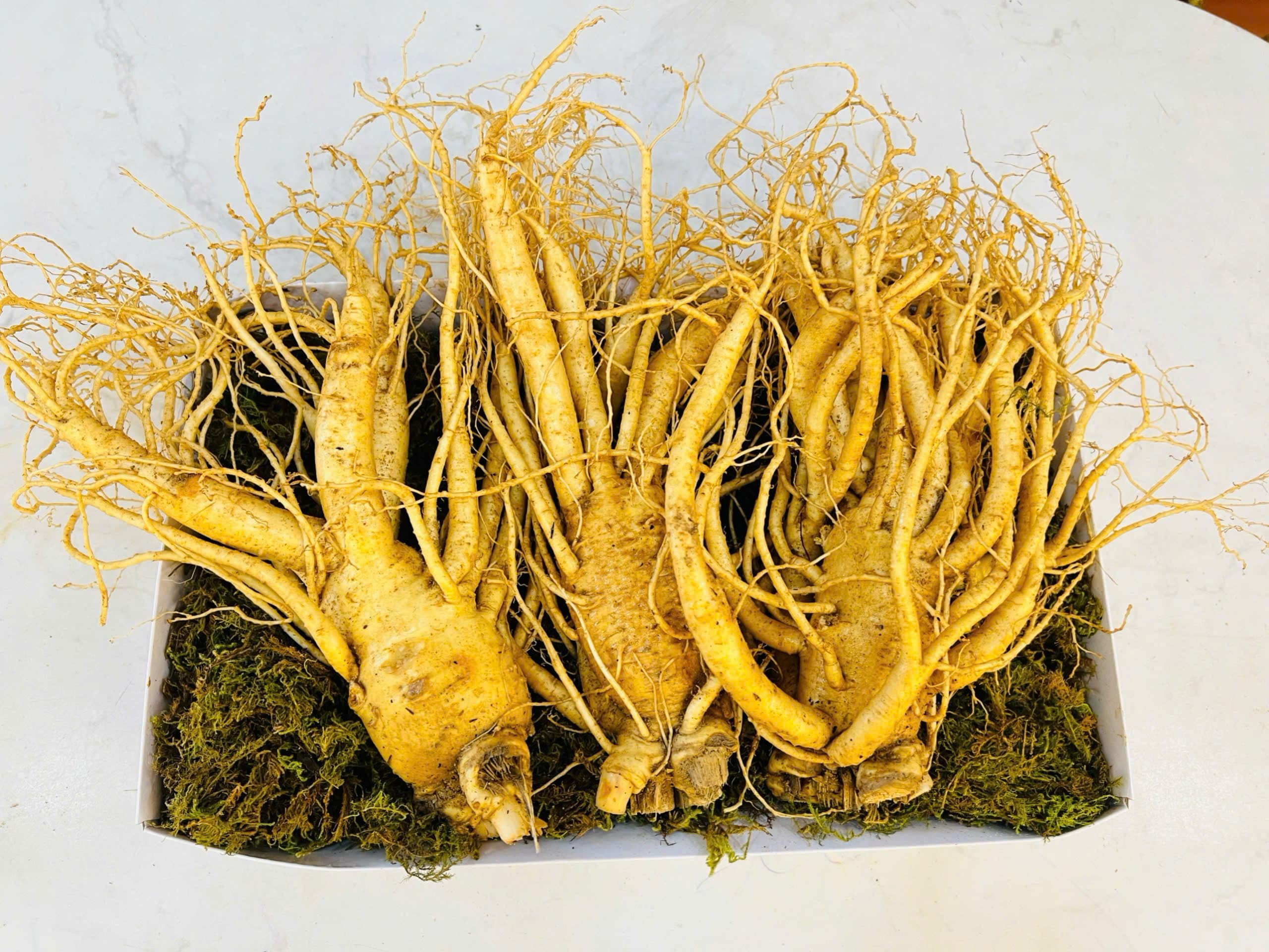 Nhân sâm tươi Hàn Quốc 6 năm tuổi ở dạng tươi có màu sắc và ngoại hình khá bắt mắt, củ to, thuôn dài giống hình người, da bóng, đẹp, màu sáng. Nhập khẩu từ tỉnh Geumsan Hàn Quốc.